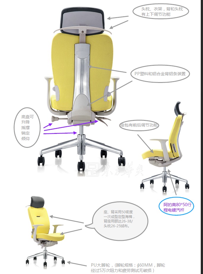 管和底盤(pán),底盤(pán)有升降、搖擺、銷(xiāo)定、傾仰,座包有前后調(diào)節(jié)功能。座、背采用50