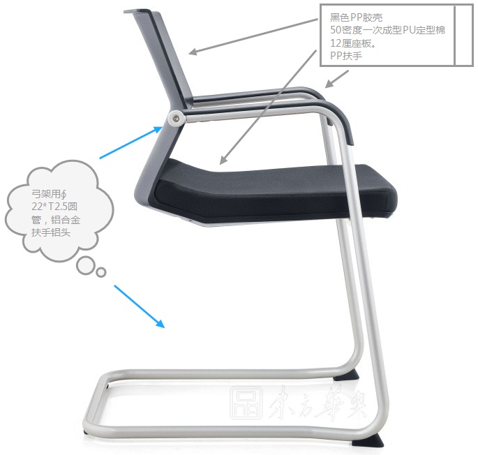 B:PP扶手,弓架用∮22*T2.5圓管,鋁合金扶手鋁頭,全部噴755色,用華