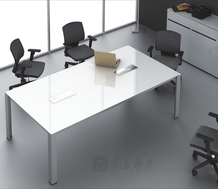 Meeting會議桌依然保持著Rising的簡約風格。桌面同樣采用鏡面高光UV漆或松木紋飾面和細薄的金屬封邊,桌腳設計為“L”形和“T”形的鋁合金柱腳,簡潔明快、輕盈大方,讓整個會議空間豁然開朗。