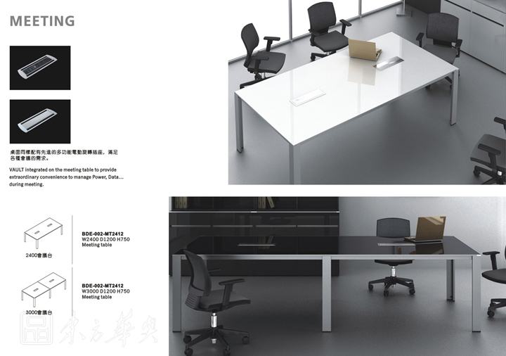 桌面同樣配有先進的多功能電動旋轉插座,滿足各種會議的要求...